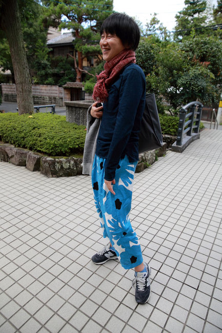 そして、穿いているパンツは、 脇阪さんのデザインの布を仕立てたもの。