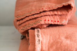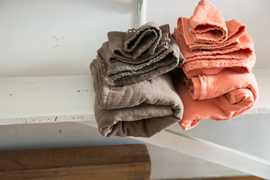前回の「BEGINNING」シリーズ、 そして今回の横尾香央留さんの 「いろんな刺しゅう」シリーズは、 タオルの地色を「ボタニカル・ダイ」 という手法で染めています。