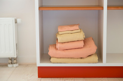パイル面とガーゼ面で 微妙に色のちがいがでるのは、 そもそもの綿糸の種類や、織り方によって、 染まり方や、光の反射の仕方が異なるから。 「やさしいタオル」のやさしさのゆえんである 上質な綿糸をつかったパイル面のほうは、 ガーゼ面にまして、さらに深みが出ただけでなく、 やわらかさもアップ。 「思わず、頬ずりしたくなる」ような 質感に仕上がっているんですよ。 |
