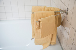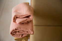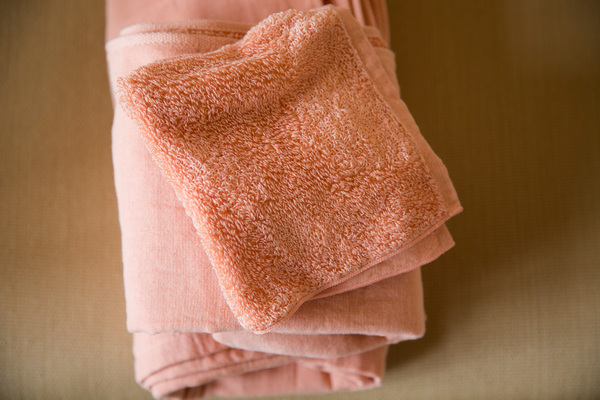 ひとつの植物からとれる色素というのは、 じつはひとつだけではなく、 思いがけない色をも抽出することが できるそうなのですけれど、 今回の「ジンジャー」と「シナモン」は、 もともとの印象にぴったりの色。 淡いけれど深みのあるベージュが 「ジンジャー」、 ピンクベージュというのか、 おだやかなレンガ色のような色は 「シナモン」からうまれました。 どちらも「あたためる」ことが 得意な植物だったことが、 この色にした、決め手のひとつ。 織り上がったタオルを、まるごと染めています。