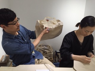 大原さんのデザイン画のカードも ついてきますよー。 バッグはたくさんご用意くださったそうですが、 数には限りがあるそうなので、 お早めのご注文、お待ちしております。 一個8000円です。