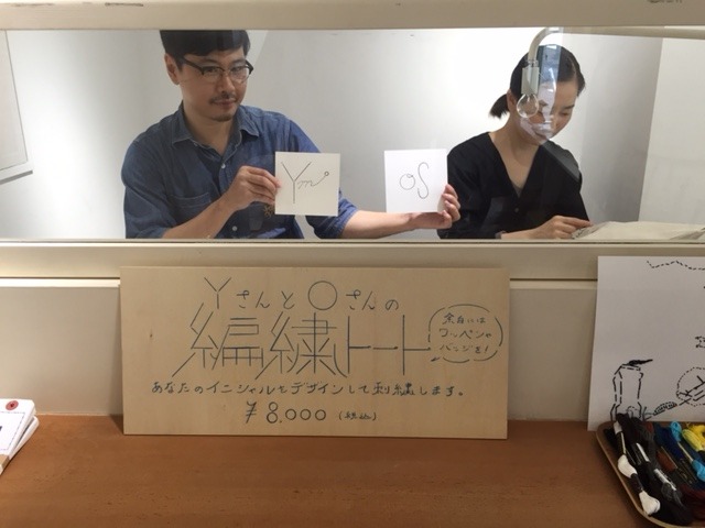 1 お名前をお伺いします 2 大原さんがあなたのお名前のなかから、 三文字アルファベットを ぬきだして、デザインします。 3 横尾香央留さんが、 大原さんのデザインをもとに、 コットンのトートバッグに 刺繍をします。 4 あなただけの「編繍(へんしゅう)バッグ」の出来上がり!