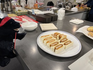 ちゃっかりカツサンドも食べようとしています。