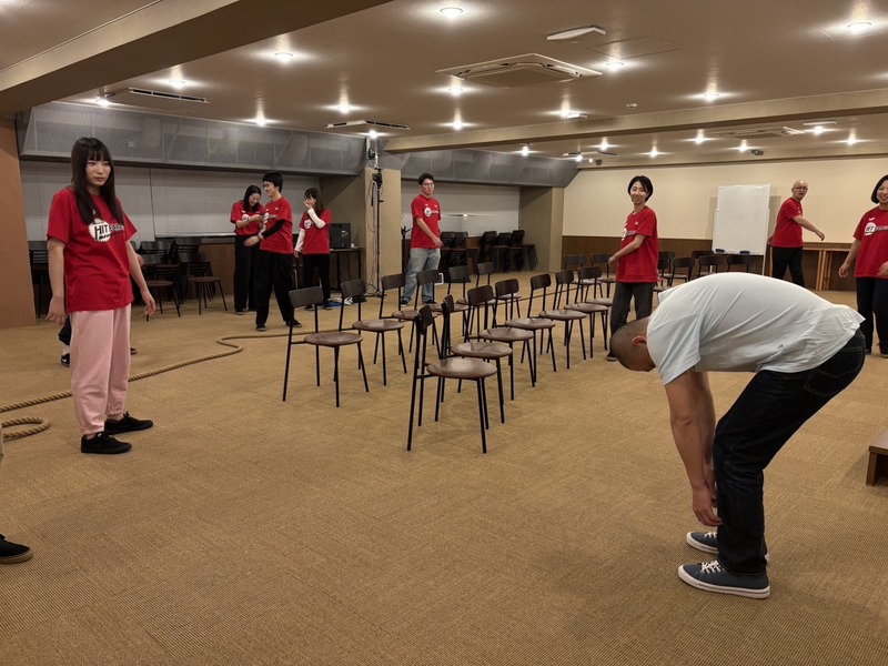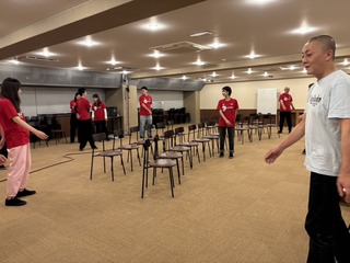 みんなで最後のイス軸を入れています。