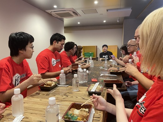 かつ丼を食べ終わったヒッパレーズ、