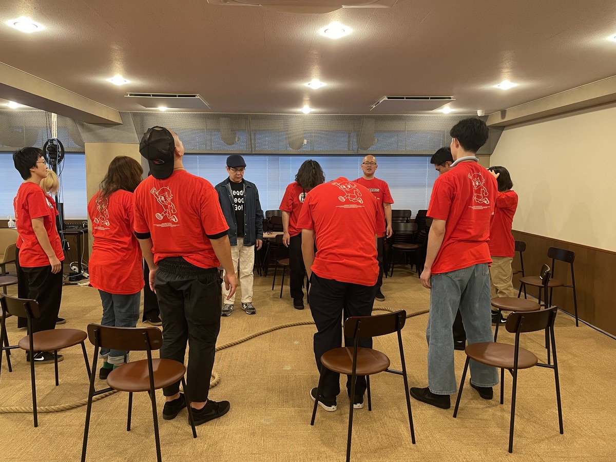 監督は、まだユニフォームの赤いTシャツではなく、