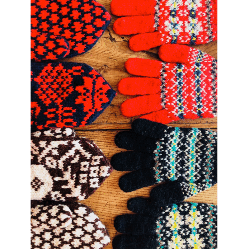 こういう帽子やミトンを作りためて