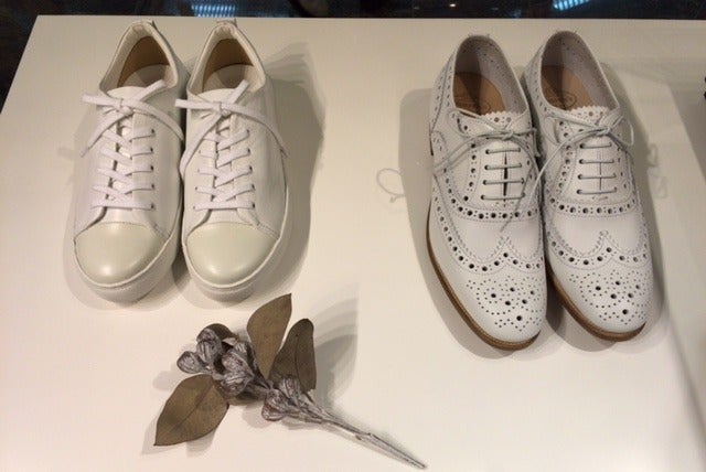 小さなテーブルに、白いスニーカーや、