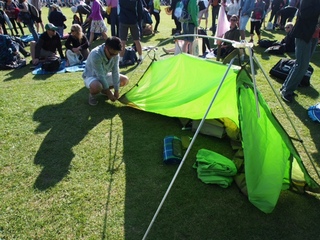 テントを組み立てる。