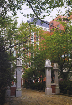 新緑に囲まれたこちらの校舎は慶應義塾大学。