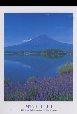こちらはさわやかなラベンダー。湖面にうっすら逆さ富士。