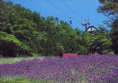 ロープウェーの下に咲き広がるのはラベンダー。