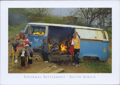 うわっ! バスの中でたき火! 南アフリカの絵はがきです。