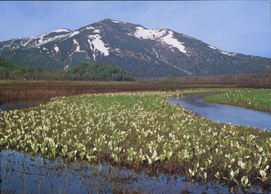 群馬県の尾瀬ケ原に咲く、水芭蕉。
