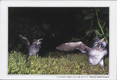 右の鳥、よく見ると、めっちゃ魚くわえてるんですよ。