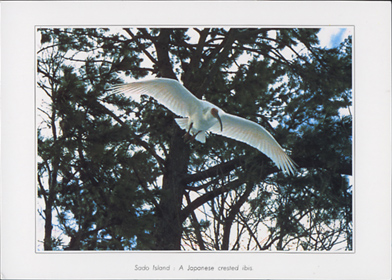 同じく佐渡島から、羽ばたくトキ。