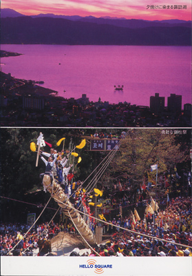 上半分は諏訪湖ですが、下半分に御柱祭!