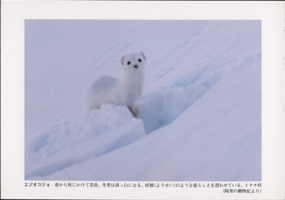 追えば逃げ、立ち止まると振り向くエゾオコジョ。