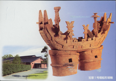 写真は宝塚古墳から出土した宝塚1号墳船形埴輪。