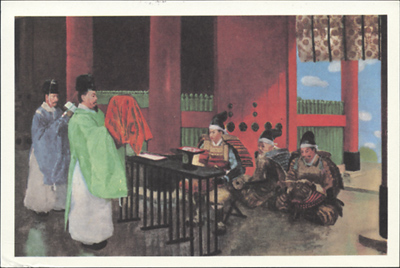武士は八幡宮に参拝して出陣したそうです。以上、絵はがきより。