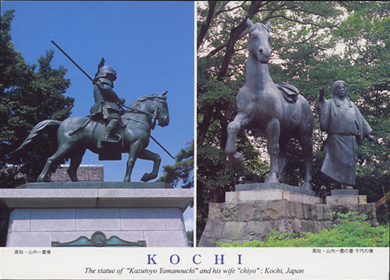 山内一豊と、その妻、千代の像。フロム・高知。