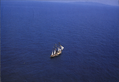 復元されたオランダ船、観光丸を上空からとらえてみました。