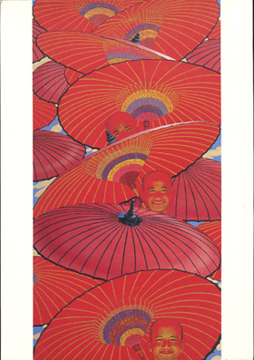 傘のあいだに、笑顔の坊主! 傘の間に間に、笑顔の坊主!