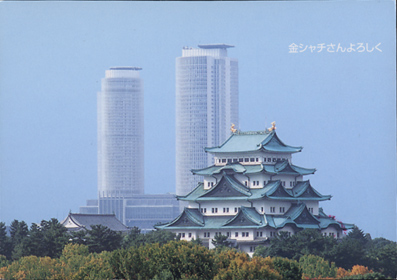 名古屋城の背後に見えるのはJRセントラルタワーズだそうです。