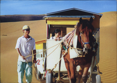 砂丘、馬、馬車、という非日常的な要素が満載であるにも関わらず