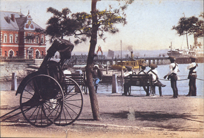 「海岸通りから臨む大桟橋」だそうです。明治末から大正初期。