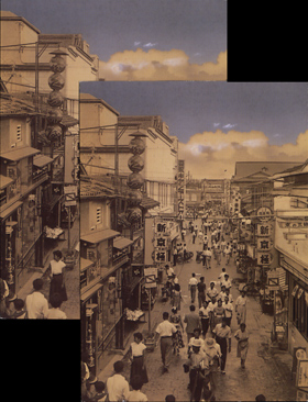 昭和30年ごろの京都、新京極通りの絵はがきが、