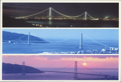 そしてこちらは、さまざまな時間帯の明石海峡大橋。