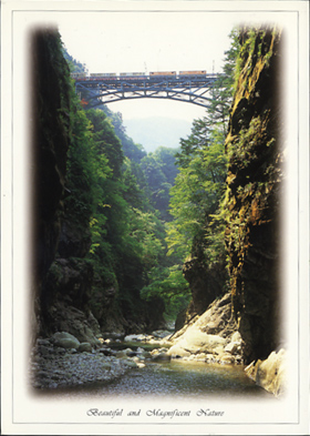 富山県、黒部峡谷の後曳橋。これも高いなー。