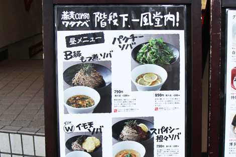 「Wイモ天ソバ」「スパイシー坦坦ソバ」などが並ぶ。 |