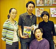 さて、第1回でも、書かせていただいたのですが、 darlingは今回の「サルのおせっかい」について こんなように語っているのです。 「一所懸命に仕事をしてきた人たちは、 誰でも、振り返れば インスタントラーメンのお世話になってきた、 という思いがあるのではないでしょうか。 いまがんばっている人たちのほとんどは、 時間か金か、どっちかが足りないわけですよね。 そういう人たちにエールを送り、 サポートするようなラーメンを つくりたいと考えていました。 しかも、おいしくて新しいものでなくちゃ、と。 まず、どたばた大忙しの自分たちが、 ほしかったんです。 できた! うれしい! です!」 私たちもうれしい! がんばっている人のサポートをしたい!! と、いうことで、 「夜遅くまで、一所懸命にお仕事をしている方々に お夜食をお届けしようではないか!」と思い立ちまして、 明るいビルを飛び出して、行って参りました! 夜が遅いといえば、日ごろ私たちも いろいろとお世話になっている出版業界のみなさま。 テンパッてたり、やっつけてたり、バタバタしてたり、 とかくオトナ語が飛び交っていそうな空間ですよね。 まずは「サルのおせっかい」になみなみならぬ興味を 持っていただいた「日経アソシエ編集部」のみなさんが いらっしゃる日経BP社さんと、 「新宿二丁目のほがらかな人々」の出版にあたって 大変お世話になった角川書店さんに 「サルのおせっかい」とポットを持って お届けに行ってみました! どれほど夜食が重宝されているのかなぁ。と思って、 アンケートをとらせていただいたところ、 ★会社でお夜食を食べるのは