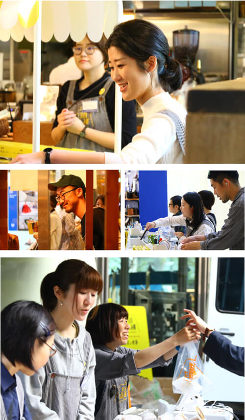 洋服や雑貨などが並んだり、食材やコーヒー、