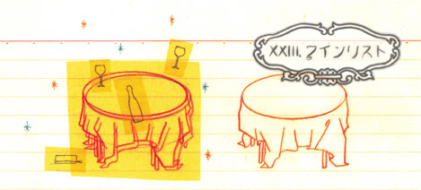 ![]() 「注文をし終えました。 ナプキンを拡げて料理を待ちましょう」 というのが前回までのお話。 あれ? なにか足りないような気がします。 そうですね。 その時のテーブルの上はどんな状態でしょう? 料理があるわけじゃない。 たいていの場合、パンもない。 お水すら置かれていないことがほとんどで、 テーブルクロス以外何も見当たらない、 というような殺風景な状態です。 そんなテーブルを囲んでただひたすら待つ、 というのはあまりにさみしい。 何かをテーブルの上に置きたくはならないですか? だからワインリストを貰いましょう。 ワタシ、ワインは頂けないから‥‥。 なんて無粋なことを言っちゃいけません。 どんなワインを取るのか、 あるいはワインでなくどんなお酒を飲むのかは この際、問題じゃないんだネ。