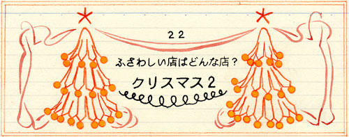 クリスマスにふさわしい店って どういう店なんでしょうか? クリスマスっていうとみんな 「フランス料理」とか 「イタリア料理」とかを思い浮かべるようです。 西洋のお祭り感が強いから、やっぱり西洋料理で、 ということになっちゃうのかもしれないけれど、 本来のクリスマスの意味は 「大切な人とシアワセを分け合う」 ということになるのだから、 シアワセになれる場所であればどこでも大丈夫なんです。 例えば、雪の降る夜の日本料理店のお座敷。 例えば、男性ばかりのグループで囲む中国料理店の円卓。 十分に楽しく、十分にシアワセなクリスマスの食卓です。 逆にフランス料理のレストランのように クリスマスにふさわしそうに思えるレストランでも、 利用しちゃいけない店ってあるんでしょうか。 実はあります。 かなりの数、あるんで要注意です。
