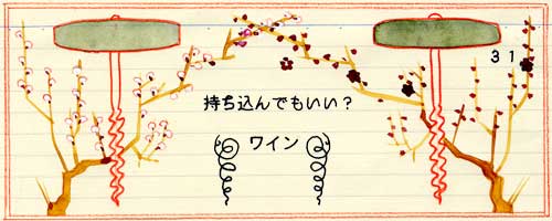 ポイントはこうです。 自分はすんごいワインを持ってるから、 それをお宅の店で飲ませろよ、では決してないということ。 大切なワインを、より美味しく楽しみたいので、 そちらの店で抜いて飲ませていただけませんか、 であるということ。 お前の店で用意してあるワインより、 オレのワインの方がましだろう、ではなくて、 ワタシはソムリエではありませんし、 あなたのお店のようにワインに対する 経験もないものですから、という姿勢をみせること。 そうするとまず、ワインを持ち込むべきお店、 そうではないお店が決まります。 ワインを扱いなれてない店。 知り合いになるべき情熱的で誠意のある人が働いてない店。 親密でカジュアルな雰囲気のない店。 つまり、小さくともワインが大好きな人が働いている 気持ちの良い店こそが ワインを持ち込むのにふさわしい場所、 ということになるでしょう。 そして最後に、持ち込んだワイン、 抜いてもらったワイン、 最後のグラス一杯分はお店の人に残しておきましょう。 幸せのおすそ分けです。 空っぽになったワインのボトル。 エチケット部分に 抜栓してもらった人にサインをしてもらう。 いいアイディアです。 記念になります。 心に残る宝物、になるはずです。 illustration = ポー・ワング |