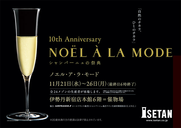 | NOEL A LA MODE シャンパーニュの祭典 11月21日(水)~26日(月)<最終日6時終了> 伊勢丹新宿店本館6階=催物場 ![]() |