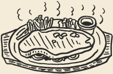 フォークを料理に突き刺して、ナイフを当てて切り分ける。