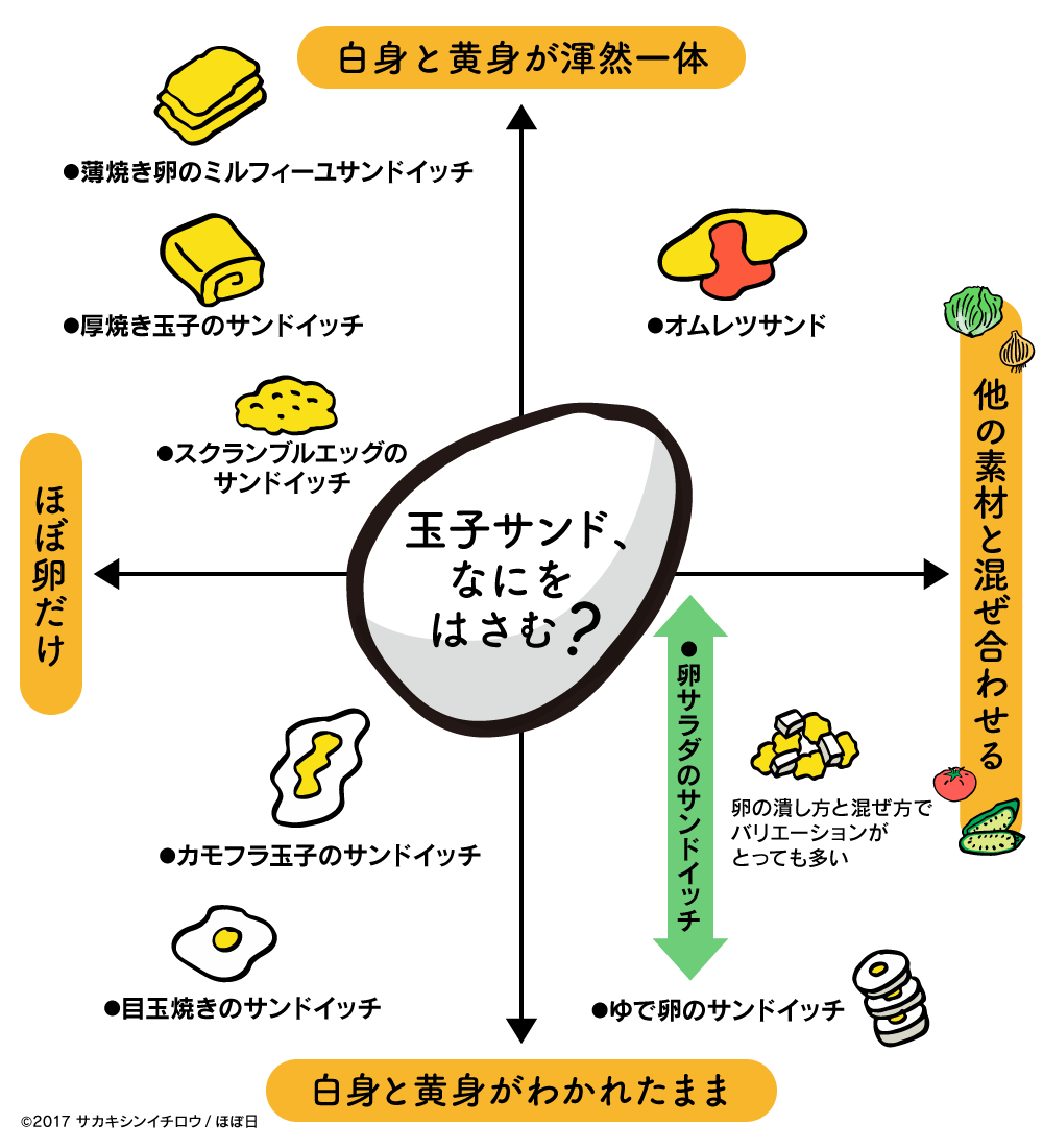 玉子を使ったサンドイッチをチャートで分類してみました。