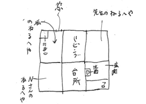 昨夜おそくにNさん宅の配置図を描いた。