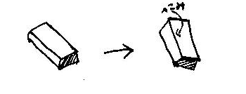 ペコッと、2面を切りとった箱のようになってきた。