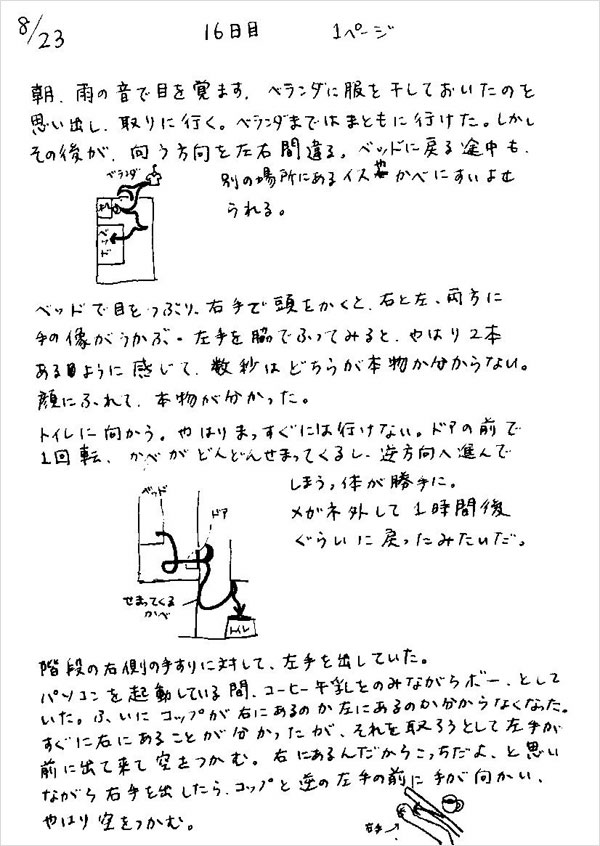 上下反転メガネを15日間かけた後に、