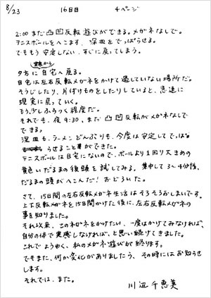 川辺さん、 15日間+終了後1日、