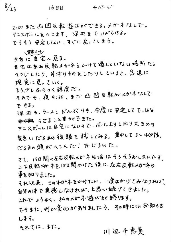 さて、15日間の左右反転メガネ生活は