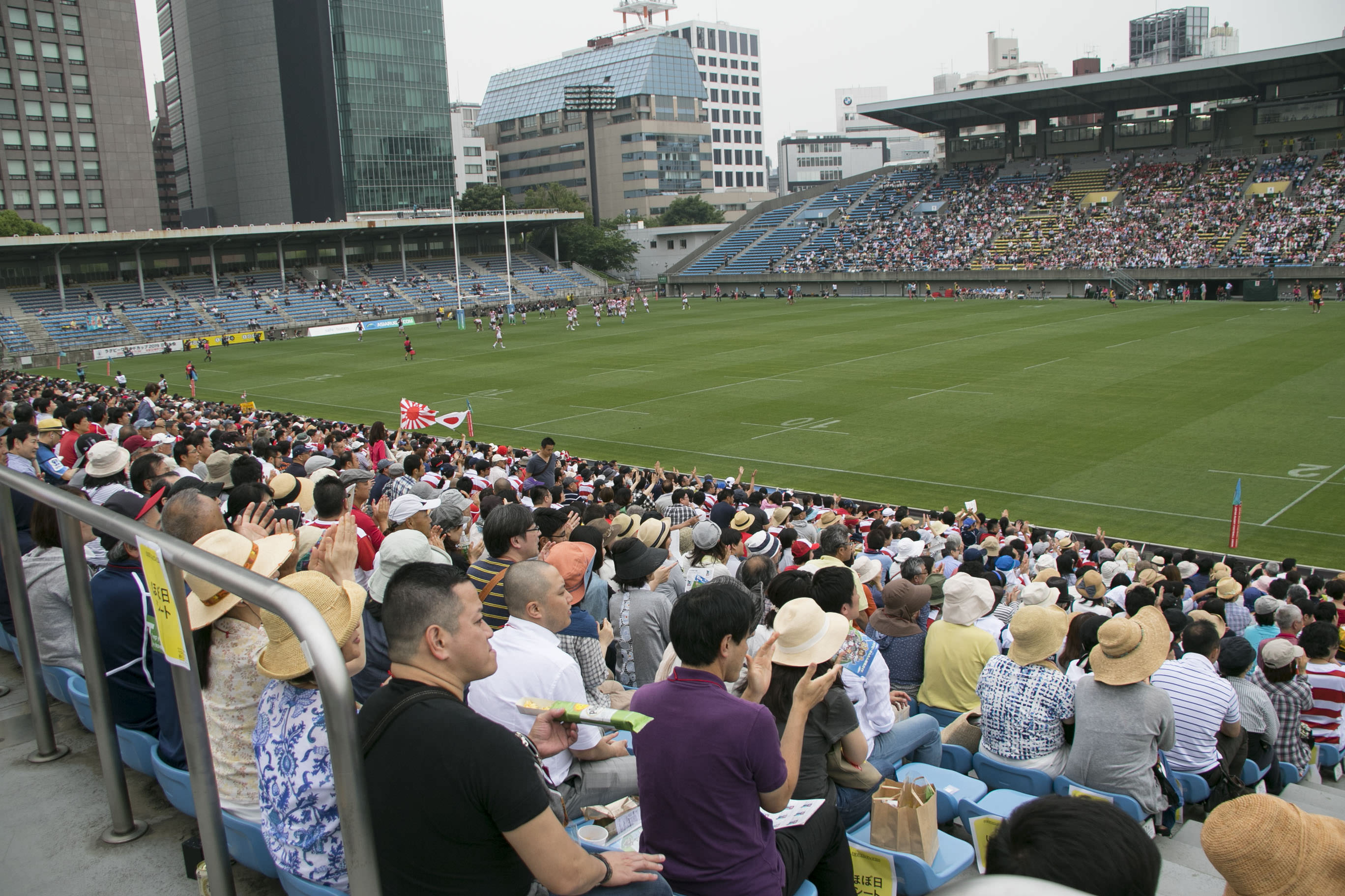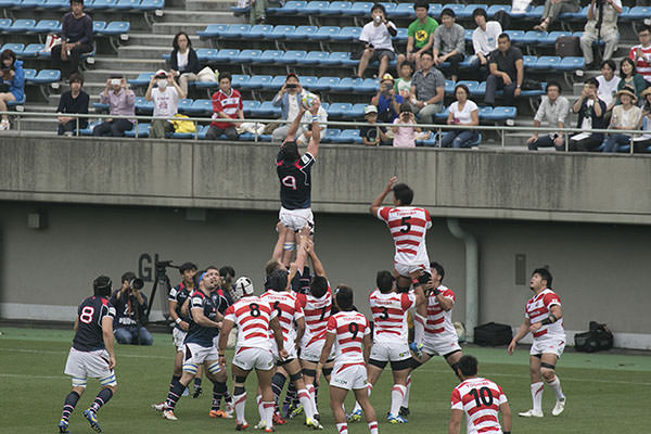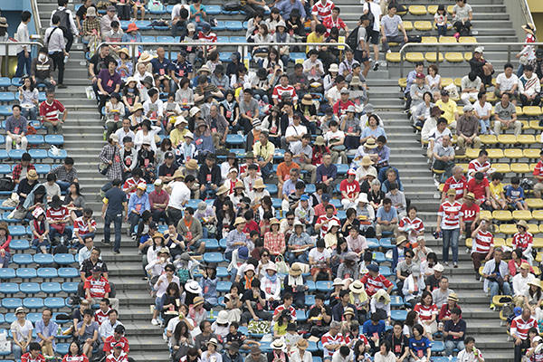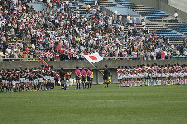 ▲目の前の線を超えればトライ。ライン際の攻防は、応援にも熱が入ります。