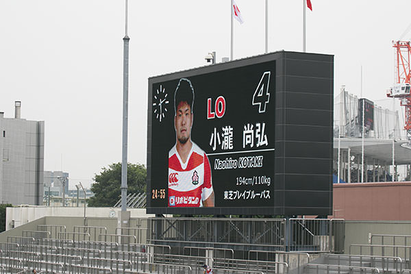 ▲得点を入れた小瀧選手がビジョンに映されて歓声を浴びます。