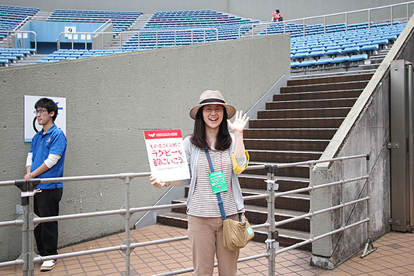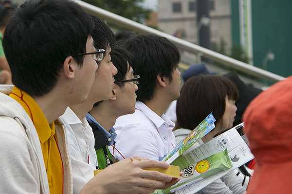 ▲ルールが書かれたパンフレットを見て応援中。はじめてでも、たのしめます。